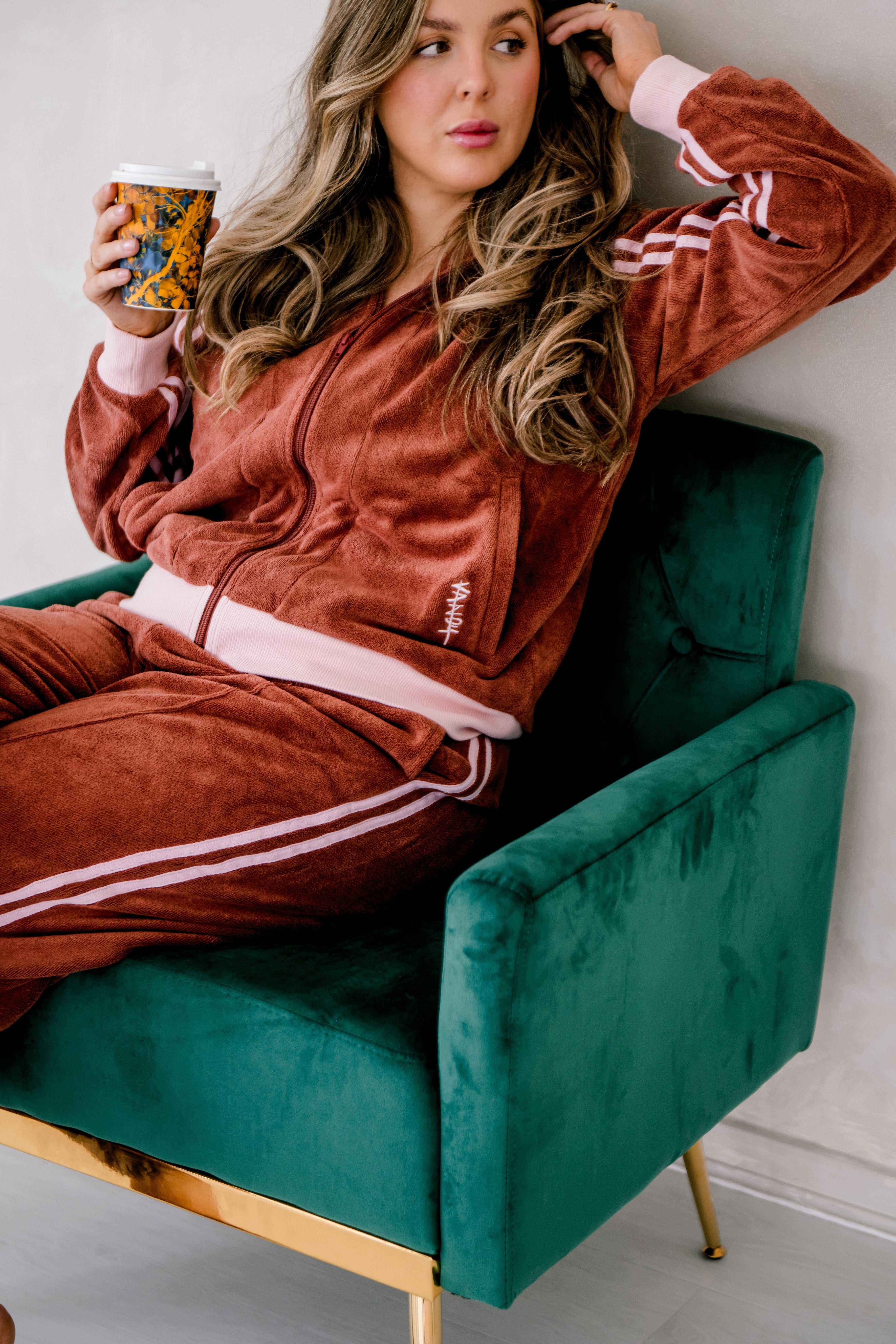 This is the full set that does it all. Zipper, pants, and relaxed tank — all in soft, comfortable terry that feels as good as it looks.