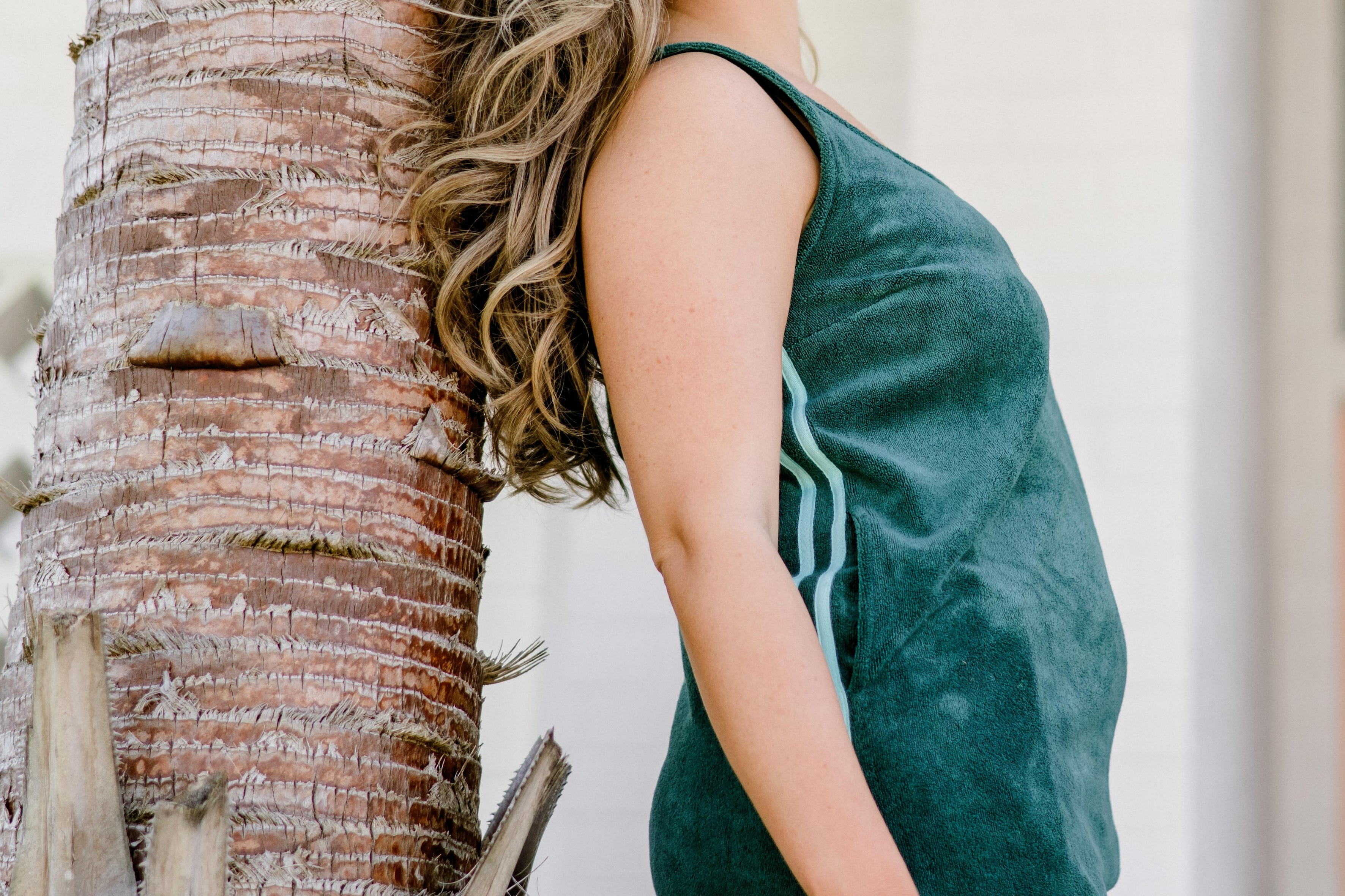 Game, set, fun. The Electric Green Terry Dress serves retro-tennis vibes with a punchy green base and aqua racer stripe. Soft terry towelling keeps it comfy while the bold colour combo does the talking. Dress it up with sandals or keep it sporty with sneakers—beach to brunch to sunset spritz, it aces versatility. Original VANDY attitude, effortless throw-on ease, and a little wink while you’re at it.
