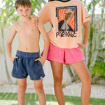 Play it smart all Summer with our Kids Witty Blue Cord Shorts. Same cleverly cool blue cord and neon side stripes as the grown-ups—re-sized for our little loves. Soft, comfy and built for all-day play, they move from beach to backyard to ice-cream runs without missing a beat. They’re forgiving on dirt and designed to be thrown on the floor ready to wear again the next day :)
