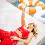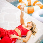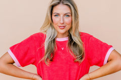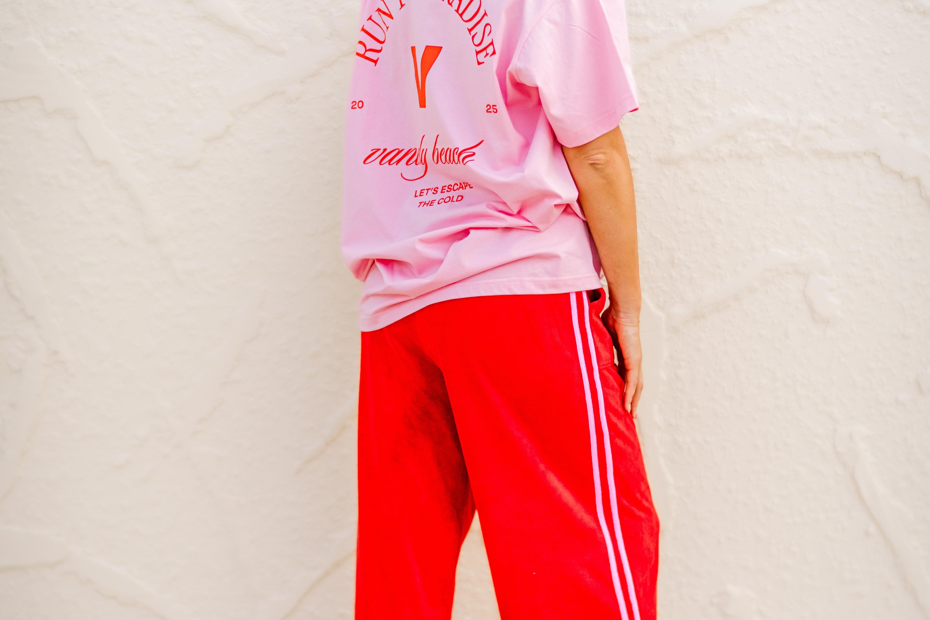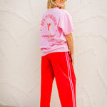 The Sassy terry pant is a winter twist on our favourite shorts. Red hot with a playful pink stripe, she’s got main character energy from couch to café.